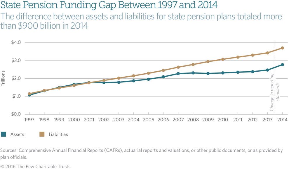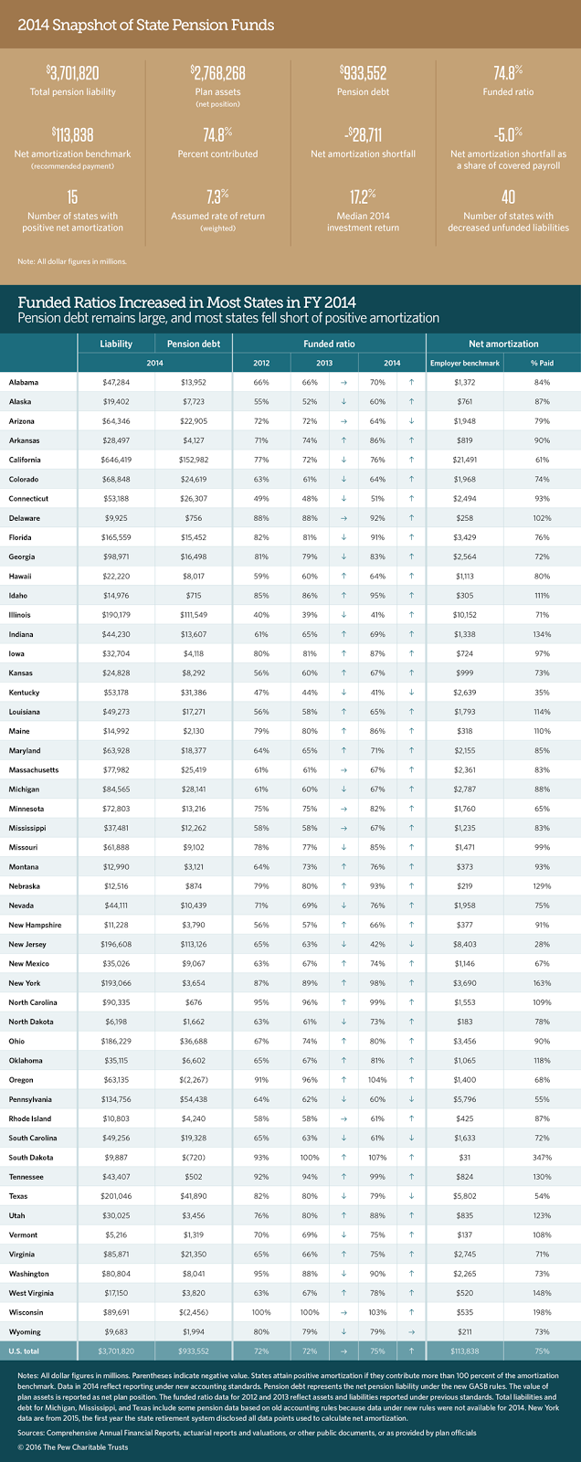 Let’s have a closer look at The Pew Charitable Trusts’s analysis on state pension deficits, The State Pension Funding Gap: 2014: