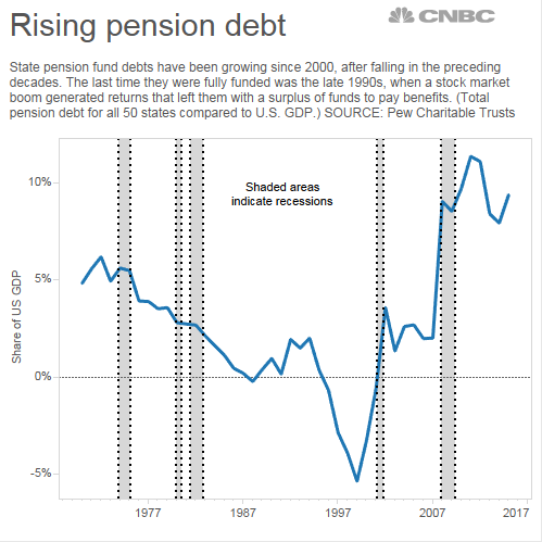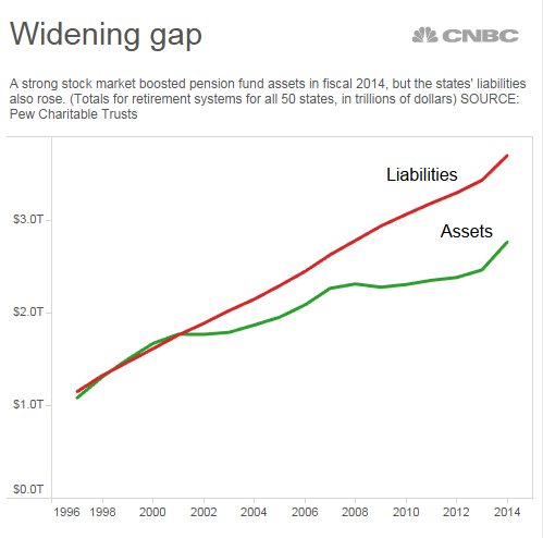 John W. Schoen of CNBC reports, States face pension fund gap approaching $1 trillion: