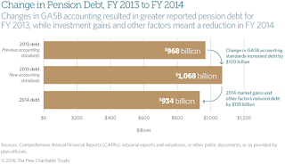 Figure 2 shows the impact that changes in accounting standards had on total reported pension debt in 2013 as well as the effects of investment gains and other factors in 2014.