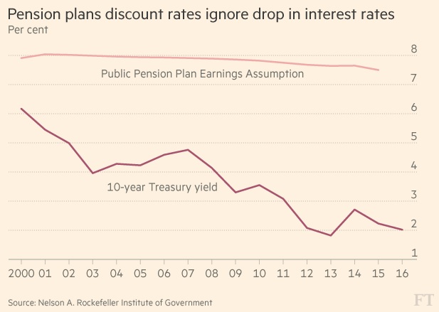 Those lower returns mean states with badly underfunded retirement plans will have to set aside more tax dollars to fill the shortfall.