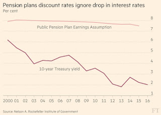 I think you are missing the point, pensions are all based on a promise that they will have enough money to cover future liabilities. In a deflationary world, rates will remain ultra low or negative for years, which means low returns and more importantly soaring liabilities. The only spread that counts is the one between assets and liabilities and since the duration of liabilities is much bigger than the duration of assets, deflation will kill pensions, especially poorly governed, chronically underfunded US pensions.