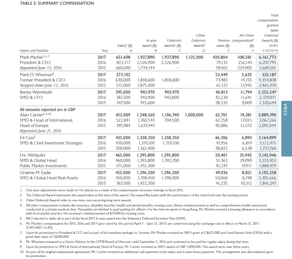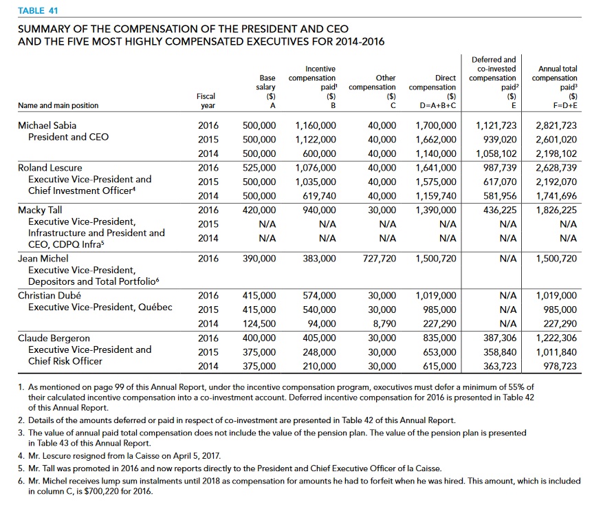 Lastly, below I embedded a summary of the compensation of the senior executives at CPPIB (click on image from page 83 of the Annual Report):
