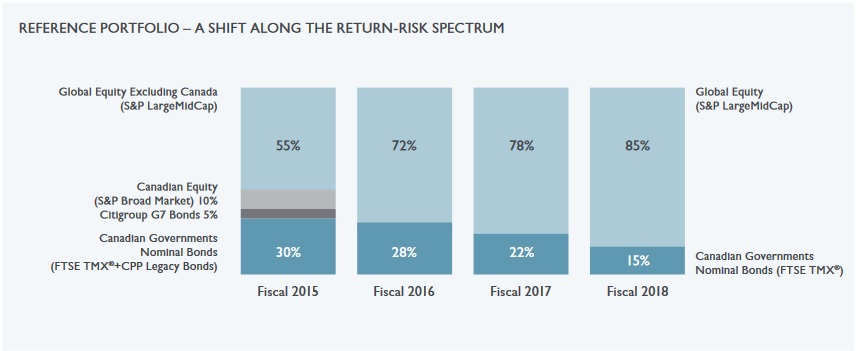 On page 26 of the 2017 Annual Report, there is an interesting discussion on CPPIB’s shift in Reference Portfolio to attain its future funding objectives given the CPP is a partially, not a fully funded plan: