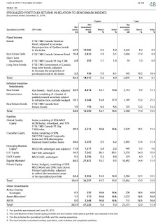 Unfortunately, it’s not that clean and simple as the Caisse also plays benchmark games and hides it through this nonsense of “benchmark agnostic management”. Have a look at the benchmarks used to gauge the value-added of the Caisse’s investment portfolios (click on image; from page 48 of the 2014 Annual Report):