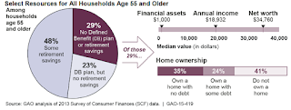 A new GAO analysis finds that among households with members aged 55 or older, nearly 29 percent have neither retirement savings nor a traditional pension plan.