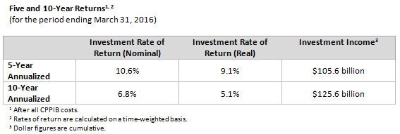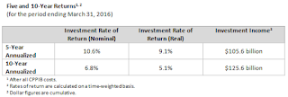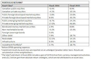 CPPIB put out a press release going over its fiscal year 2016 results(added emphasis is mine):