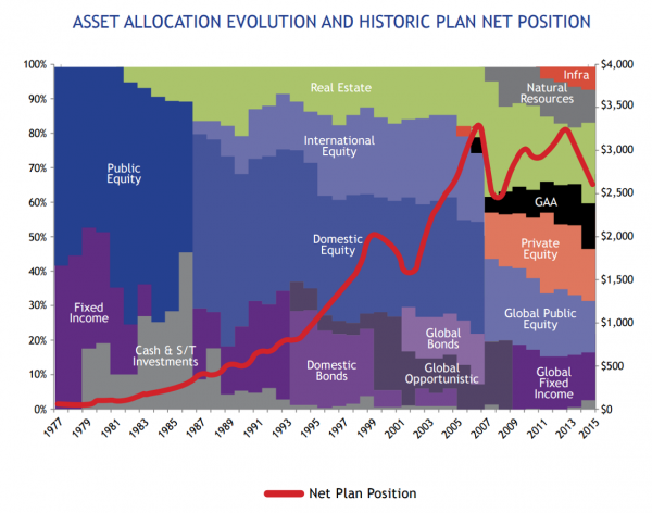 This came as over 50% of the assets were diverted into illiquid real estate and private equity investments back in 2006 (click on image).