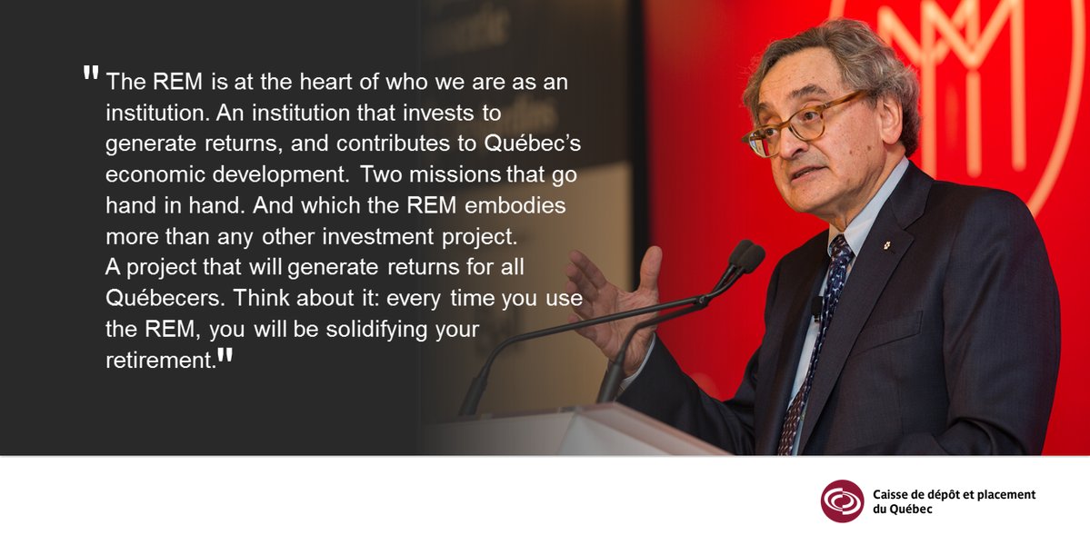 In spring 2016, CDPQ Infra, a subsidiary of la Caisse, announced its integrated, electric public transit network project to link downtown Montréal, the South Shore, the West Island, the North Shore and the airport. Since then, several major steps have been completed on the Réseau électrique métropolitain (REM) project, with construction scheduled to begin in 2017.