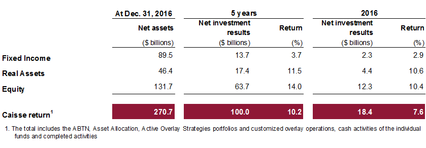 The Caisse de dépôt et placement du Québec today released its financial results for calendar year 2016, posting a 10.2% five-year annualized return:
