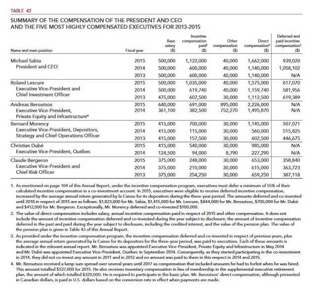 And long-term results are what counts in terms of compensating the Caisse’s senior managers (from 2015 Annual Report, click on image):