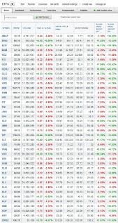 So, you really think the Fed is going to hike rates in this deflationary environment? No chance, and if things get really bad, the Fed will be forced to cut rates or go negative. No wonder Financials (XLF), Metal and Mining (XME) and Energy (XLE) shares are getting clobbered on Monday but they’re not alone (click on image to view various ETFs I track):
