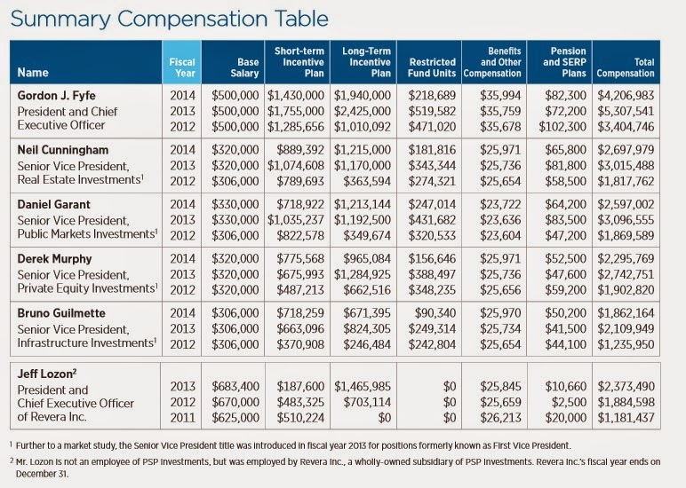 In fact, over the ten years at the helm of PSP Investments, a federal Crown corporation that is in charge of managing the pensions of people on the federal government’s payroll, Gordon Fyfe and his senior executives literally made off like bandits, especially in the last few years. This is why I poked fun at them when I covered PSP’s FY 2014 results but was dead serious when I wrote this: